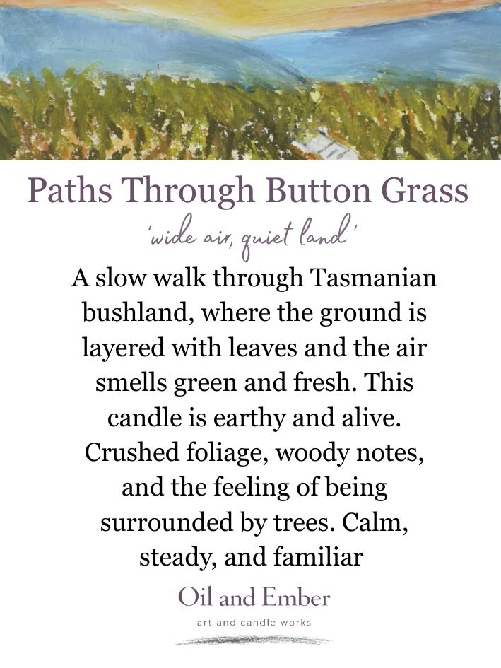 An earthy bushland scent inspired by quiet walks through Tasmania's button grass plains.